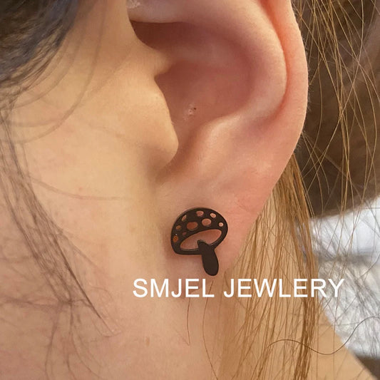 2024 New Stainless Steel Mushroom Earrings Black Tiny Mushroom Pendant Earrings for Girls Women Girls Birthday Gift Jewelry