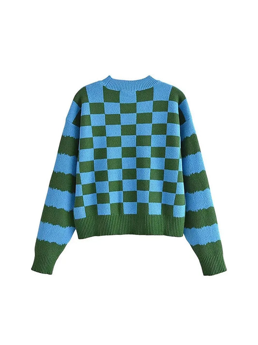 2024 New Women's Sweater Round Neck Contrast Color Cute Mushroom Pullover Long Sleeve Age-Reducing Sweater Top