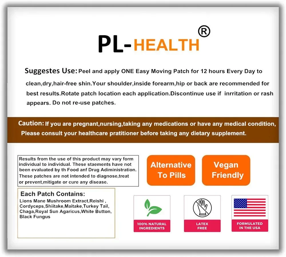 Advanced 10 Mushroom Complex Transdermal Patches for Brain Memory Focus Immune Support Lions Mane-Reishi-Cordyceps 30 Patches