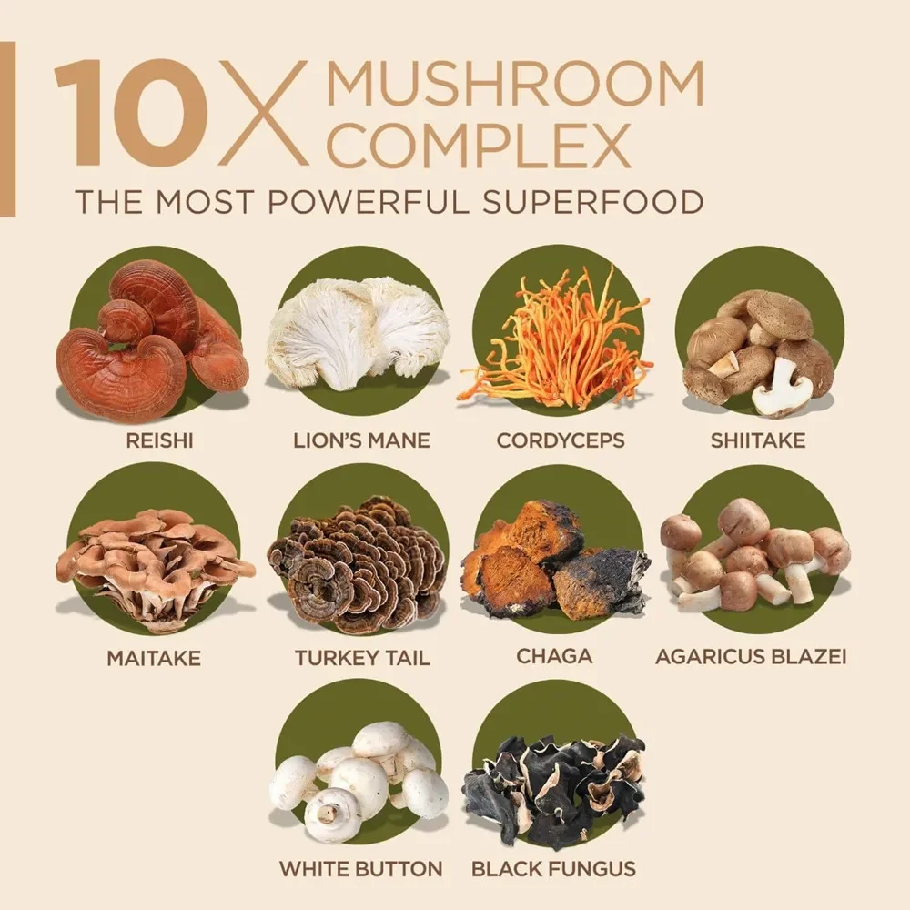 Lions Mane Mushroom Extract,Reishi ,Cordyceps,Shiitake,Maitake,Turkey Tail,Chaga,Royal Sun Agaricus,White Button,Black Fungus